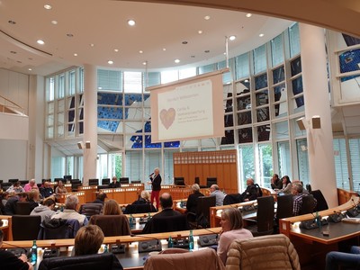 Im Ratssaal der Stadt Dortmund tauschten sich die Teilnehmenden beim Meilensteintag zum Thema „Caritas und Weltverantwortung“ aus.