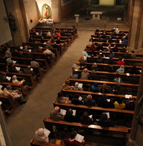 Der November schließt das Kirchenjahr ab, er ist geprägt vom Gedenken an die Verstorbenen, von der Erinnerung an die Endlichkeit zugleich mit der Tröstung durch die Erlösungsverheißung und -gewissheit. Mit einem Chorkonzert am Abend des 1. November führte der Propsteikantor Simon Daubhäußer in diese nachdenkliche Zeit. Mit dem ‚Actus Tragicus‘ von J.S.Bach wurde das Konzert eröffnet – eine außergewöhnliche Kantate. Im Instrumental-Ensemble hat Bach zum Continuo nur Gamben und Blockflöten hinzufügt, ein ganz schlankes Orchester mit apartem Klang. In der gesanglichen Anlage dominiert der Chor, ergänzt durch vier Vokal-Soli. Ein Höhepunkt ist die Begegnung von Chor und Solo-Sopran, von Altem und Neuem Bund in der Mitte dieser Kantate: „Es ist der alte Bund, Mensch Du musst sterben“ und „Ja, komm, Herr Jesu, komm!“