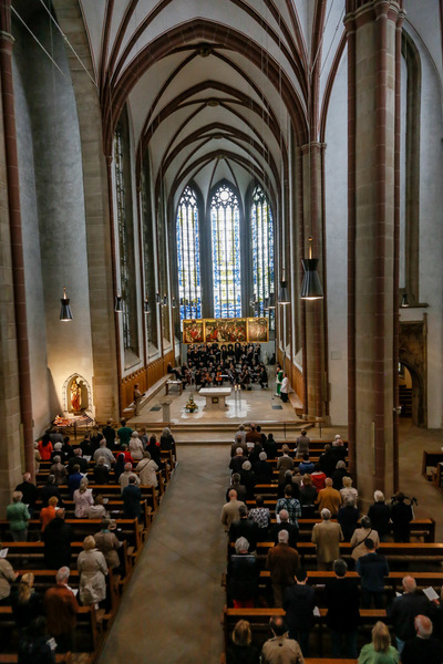 Fabio Mancini faszinierte mit seinem stringenten Probenstil, mit dem hohen Anspruch an alle Musizierenden. Simon Daubhäußer begleitete die erste Probe am Klavier, die Haupt- und Generalprobe als kritischer Hörer aus dem Kirchenschiff. Die Sängerinnen und Sänger hatten große Freude an diesem Leitungsteam.