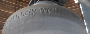 Glocke II: Inschrift: „Steh uns bei im Kampfe mit den Mächten der Finsternis“